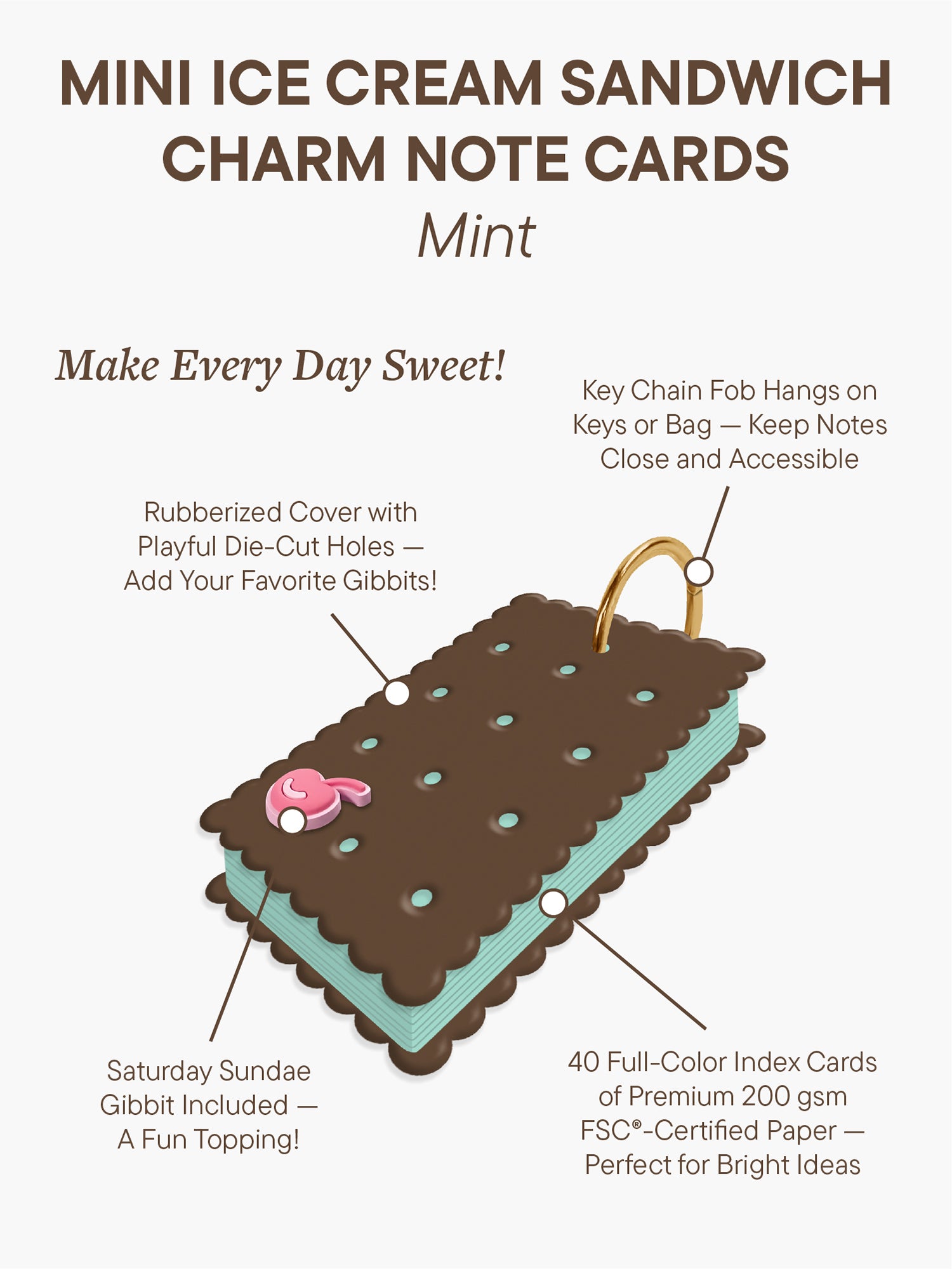 Mint Mini Ice Cream Sandwich Charm Note Cards